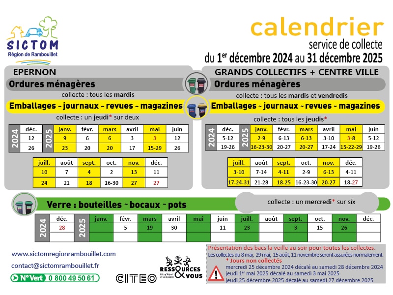 Téléchargez le calendrier des collectes 2025 sur Épernon :